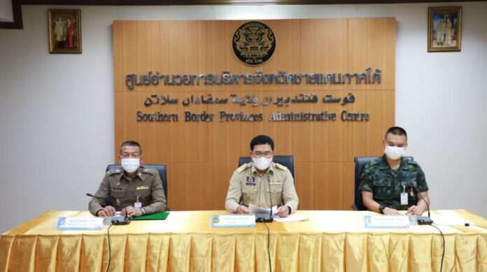 วันที่ 3 กุมภาพันธ์ 2565 ที่ ห้องประชุมเจริญจิตต์ ณ สงขลา ศูนย์อำนวยการบริหารจังหวัดชายแดนภาคใต้ (ศอ.บต.) นายอำนวย ศรีระแก้ว ผู้ช่วยเลขาธิการ ศอ.บต. พร้อมด้วย พันเอก เกียรติศักดิ์ ณีวงษ์ หัวหน้าศูนย์ประชาสัมพันธ์ กองอำนวยการรักษาความมั่นคง ภายในภาค 4 ส่วนหน้า และพันตำรวจเอก อนุพงษ์ ทัศนา หัวหน้างานกฎหมายและสอบสวน/ผู้ช่วยโฆษก กองกำลังตำรวจจังหวัดชายแดนภาคใต้ ร่วมแถลง 3 ฝ่ายถึงผลการปฏิบัติงาน การแก้ไขปัญหาและการพัฒนาจังหวัดชายแดนภาคใต้ ในห้วงที่ผ่านมา