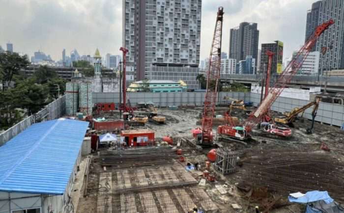 ความคืบหน้างานก่อสร้างปัจจุบันอยู่ระหว่างดำเนินการงานเสาเข็มเจาะทั้งหมด 254 ต้น ดำเนินการไปแล้ว 125 ต้น โดยเร่งรัดให้มีการดำเนินงานก่อสร้างและการเพิ่มเครื่องจักร อุปกรณ์ของงานเจาะเสาเข็ม และคาดว่าจะดำเนินการแล้วเสร็จภายในกุมภาพันธ์ 2565 เมื่อดำเนินการส่วนนี้เสร็จแล้ว จะเริ่มดำเนินการในส่วนของงาน Sheet Pile ซึ่งเป็นระบบโครงสร้างที่สามารถป้องกันดินระหว่างการก่อสร้าง ป้องกันดินพัง ป้องกันแรงดันน้ำ แรงดันดิน แรงดันอื่น ๆ ที่ทำให้เกิดการเคลื่อนตัวของสิ่งก่อสร้าง ที่อยู่ในส่วนของชั้นใต้ดินเช่น งานฐานราก งานถังน้ำชั้นใต้ดิน และงานโครงสร้างคอนกรีตเสริมเหล็ก (ค.ส.ล.) ที่อยู่ชั้นใต้ดิน ในส่วนของปัญหาฝุ่นละอองในอากาศจากการดำเนินการก่อสร้าง ได้ดำเนินการติดตั้งหัวฉีด สำหรับฉีดน้ำเป็นละออง ติดกับรั้วด้านชุมชน เพื่อลดปัญหาฝุ่นละออง