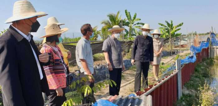 14 กุมภาพันธ์ 2565 นายสุรศักดิ์ อักษรกุล รองอธิบดีกรมการพัฒนาชุมชน พร้อมด้วยนายอาทร พิมชะนก ผู้ตรวจราชการกรมการพัฒนาชุมชน ตรวจเยี่ยมการขับเคลื่อนการดำเนินงานพัฒนาพื้นที่ต้นแบบประยุกต์สู่โคก หนอง นา โมเดล โดยมี นายสมนึก บุญยี่ ผู้อำนวยการกลุ่มงานส่งเสริมการพัฒนาชุมชน นางวีรินทร์ วันทมาตย์ พัฒนาการอำเภอ และทีมงานพัฒนาชุมชนอำเภอแม่จัน จังหวัดเชียงราย ให้การต้อนรับ ณ ศูนย์เรียนรู้โคก หนอง นา พัฒนาชุมชนระดับครัวเรือน อำเภอแม่จัน จำนวน 2 แปลง ดังนี้ 1) แปลงขนาดพื้นที่ 1 ไร่ ของนายอาคม ศรีจันทร์ หมู่บ้านหนองอ้อ หมู่ที่ 11 ตำบลป่าซาง กิจกรรมประกอบด้วยการเลี้ยงปลานิล ปลาดุก เลี้ยงกบ เลี้ยงหอยขม ปลูกผักสวนครัว มากกว่า 20 ชนิด และปลูกสมุนไพร รอบพื้นที่ ในการนี้นายวรายุทธ ค่อมบุญ นายอำเภอแม่จัน และครัวเรือนต้นแบบหมู่บ้านเศรษฐกิจพอเพียงหนองอ้อ ให้การต้อนรับและให้ข้อมูล 2) แปลงขนาดพื้นที่ 3 ไร่ ของนายธนากร โชคชัดชาญพัฒนา หมู่บ้านสันธาตุ หมู่ที่ 9 ตำบลแม่คำ ซึ่งมีการบริหารจัดการพื้นที่และขับเคลื่อนตามแนวทาง 4 มี 3 ไม่ 2 ให้ 1 ห้าม คือ