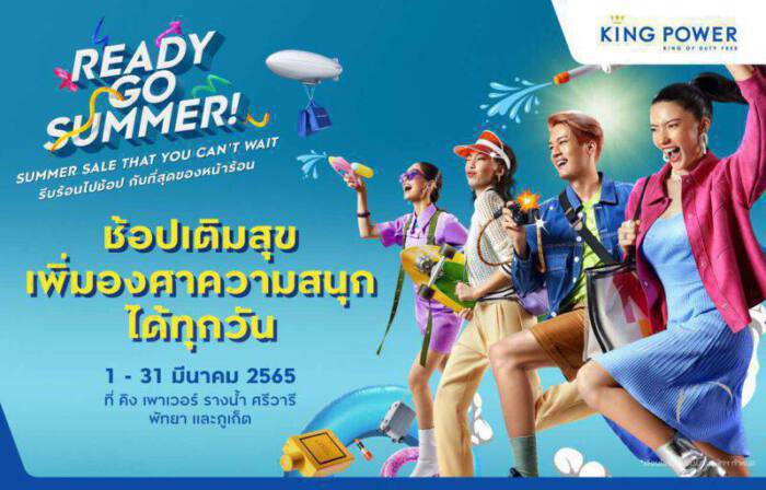คิง เพาเวอร์ ชวนช้อปเติมสุข เพิ่มองศาความสนุกรับซัมเมอร์ กับแคมเปญ READY GO SUMMER : SUMMER SALE THAT YOU CAN’T WAIT ตั้งแต่วันนี้ถึง 31 มีนาคม 2565 ที่ คิง เพาเวอร์ ทุกสาขา