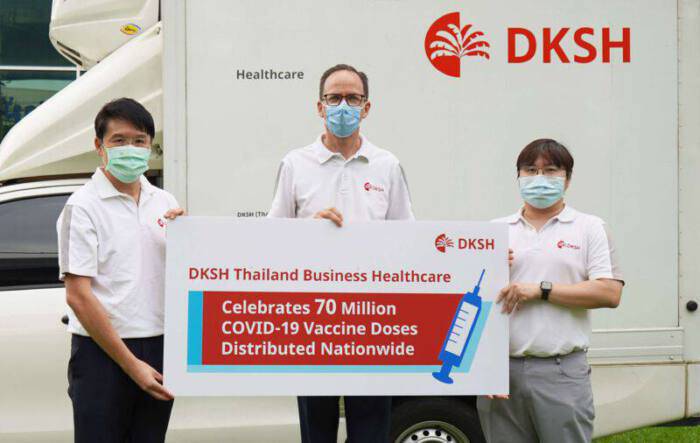 หน่วยธุรกิจผลิตภัณฑ์เพื่อสุขภาพ ดีเคเอสเอช ประเทศไทย ฉลองการส่งมอบวัคซีนป้องกันโควิด-19 ครบ 70 ล้านโดสเป็นที่เรียบร้อย โดยได้ส่งมอบในนามรัฐบาลไทยและพันธมิตรต่างๆ ทั้งนี้ บริษัท DKSH (ประเทศไทย) จำกัด ได้กระจายวัคซีนจากผู้ผลิตหลายรายสู่โรงพยาบาลทั่วประเทศ ในฐานะหนึ่งในผู้ขับเคลื่อนแนวทางการรับมือกับการแพร่ระบาดของโควิด-19 โดยภารกิจนี้ บริษัทฯ ได้รับบทบาทสำคัญระดับแนวหน้า ร่วมยกระดับการฉีดวัคซีนให้แก่ประชากรไทยอย่างทั่วถึง และได้สนับสนุนการกระจายวัคซีนป้องกันโควิด-19 ของไทยโดยตลอดมา นับตั้งแต่การรับมอบวัคซีนล็อตแรกที่เดินทางมาถึงประเทศไทยเมื่อเดือนกุมภาพันธ์ พ.ศ. 2564