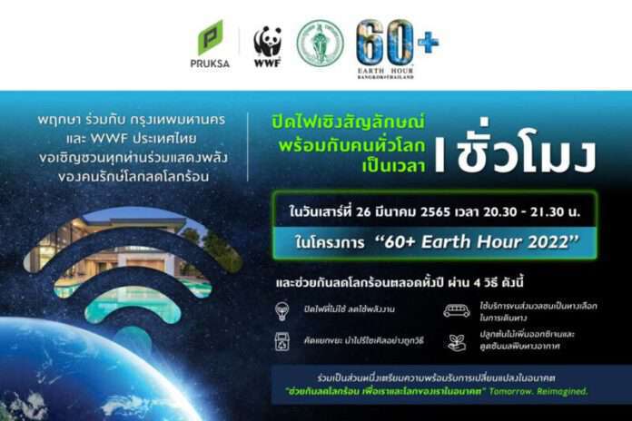 “พฤกษา” ใส่ใจสิ่งแวดล้อม ย้ำบทบาทนักพัฒนาอสังหาฯ ที่เดินหน้าพร้อมการอนุรักษ์ เชิญชวนคนไทย ผู้ประกอบการและลูกค้าโครงการมากกว่า 2 แสนครัวเรือน รวมพลังลดโลกร้อนในโครงการระดับนานาชาติ “ 60+ EARTH HOUR 2022 “ ด้วยการปิดไฟที่ไม่ได้ใช้งานในอาคารสถานที่และบ้านเรือนอย่างน้อย 1 ดวงเป็นเวลา 1 ชั่วโมง เสาร์ที่ 26 มีนาคม นี้ ปฏิบัติการพร้อมกัน 192 ประเทศทั่วโลก พร้อมเผยผลสำเร็จกิจกรรมลดผลกระทบ Climate Change ของพฤกษาตลอดหนึ่งปีที่ผ่านมา รุกต่อเนื่องรอบด้านทั้งการเพิ่มพื้นที่สีเขียว การลดใช้พลังงานไฟฟ้า ลดการปล่อยก๊าซคาร์บอนในทุกกิจกรรมทางธุรกิจ และการจัดการขยะในครัวเรือนและไซต์ก่อสร้างตามแนวคิด zero waste ในทุกโครงการบ้านเดี่ยว ทาวน์เฮาส์และคอนโดฯ เพื่อสร้างสังคมการอยู่อาศัยใส่ใจสิ่งแวดล้อมเพื่อความยั่งยืน