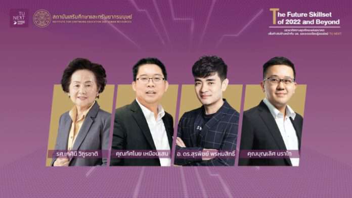 สถาบันเสริมศึกษาและทรัพยากรมนุษย์ มหาวิทยาลัยธรรมศาสตร์ ร่วมกับ บริษัทจัดหางาน Jobbkk.com และบมจ.เออาร์ไอพี จัดงานเสวนา ผ่าน ZOOM ในหัวข้อ The Future Skillset of 2022 and Beyond เสวนาทิศทางชุดทักษะแห่งอนาคตเพื่อก้าวไปข้างหน้ากับ มธ. และระบบเรียนรู้ออนไลน์ TU NEXT: www.tunext.com เพื่อให้ผู้บริหารและคนทำงานที่มีไฟในการพัฒนาตัวเอง รู้ถึงทิศทางและแนวทางการปรับตัวเพื่อตลาดแรงงานในอนาคต