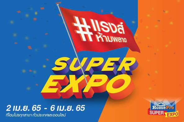 งาน HomePro SUPER EXPO ครั้งนี้ จะจัดขึ้นตั้งแต่วันที่ 2 เมษายน 65 – 6 เมษายน 65 รวม 5 วันเท่านั้น พบความพิเศษจากขบวนสินค้าเรื่องบ้าน และของตกแต่งบ้าน อัพเดทเทรนด์ใหม่รับหน้าร้อน ครบครันทุกแผนกให้เลือกสรร ไม่ว่าจะเป็น เครื่องใช้ไฟฟ้า, เฟอร์นิเจอร์, อุปกรณ์ห้องน้ำ, อุปกรณ์ครัว, ชุดห้องนอน, ห้องนั่งเล่น, สวน และอุปกรณ์ตกแต่ง, สินค้าปรับปรุง และซ่อมแซมบ้าน และอีกมากมาย พร้อมคุ้มค่ากว่าครั้งไหน ๆ #แรงส์ห้ามพลาด !! กับสินค้า Super Deal ลดสูงสุดถึง 80% คอมโบความคุ้มต่อเนื่องกับสินค้าแบรนด์ชั้นนำใน Super Brand ลดเพิ่มสูงสุดอีก 10%!!