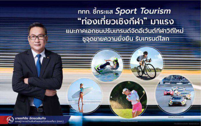 รองผู้ว่าการด้านสินค้าและธุรกิจท่องเที่ยว ททท. เปิดเผยว่า จากการติดตามเทรนด์การท่องเที่ยวทั่วโลก พบว่าการท่องเที่ยวเชิงกีฬามีอัตราการเติบโตเพิ่มขึ้นสูงสุด หลายประเทศส่งเสริมการท่องเที่ยวด้วยการนำเอากีฬาเข้ามารวมกับการท่องเที่ยว เกิดเป็นกิจกรรมหรือสินค้าการท่องเที่ยวที่สร้างสรรค์ขึ้น เพื่อให้บริการแก่นักท่องเที่ยวที่เข้าชมหรือเข้าร่วมการแข่งขันกีฬา