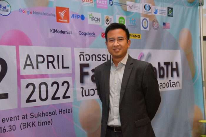 ทั้งนี้ ภายในงานมีการเสวนา “บทบาทสื่อไทยในการสกัดข่าวปลอม : อดีต ปัจจุบัน และอนาคต” นำโดยนายก่อเขต จันทเลิศลักษณ์ ผู้อำนวยการสำนักข่าวไทยพีบีเอส นายนพปฏล รัตนพันธ์ รองเลขาธิการสภาการสื่อมวลชนแห่งชาติ นายพีรพล อนุตรโสตถิ์ ผู้จัดการศูนย์ชัวร์ก่อนแชร์ สำนักข่าวไทย ผู้สนใจข้อมูลเพิ่มเติมได้ที่เว็บไซต์โคแฟค www.cofact.org https://blog.cofact.org และเฟซบุ๊กแฟนเพจ www.facebook.com/CofactThailand