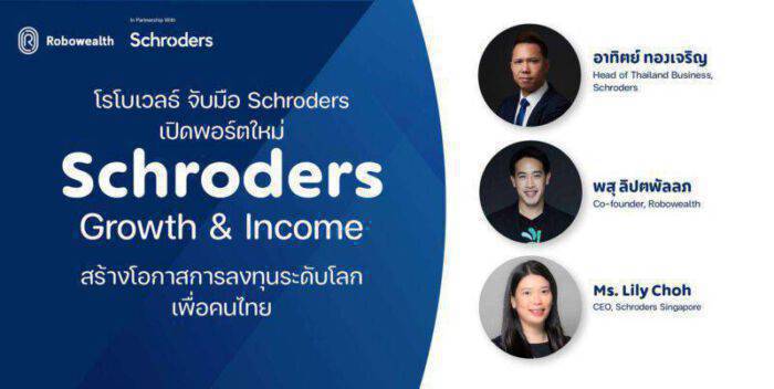 “พอร์ตการลงทุน Schroders Growth & Income จึงเป็นส่วนสำคัญที่ทำให้นักลงทุนไทยสามารถเข้าถึงความชำนาญในการบริหารกองทุนระดับโลกของ Schroders ได้ง่ายขึ้น และเรารู้สึกยินดีที่ได้ร่วมมือกับ Robowealth ที่จะร่วมกันพัฒนา และส่งมอบโซลูชันในการลงทุนผ่านระบบดิจิทัลให้แก่นักลงทุนในประเทศไทยต่อไป” Ms. Lily Choh ปิดท้าย