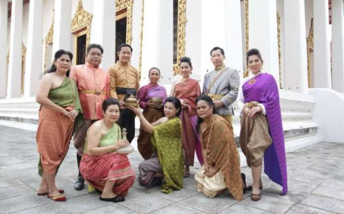 รองพ่อเมืองจังหวัดนนทบุรี นางสาวอโรชา นันทมนตรี และนายอภิชัย อร่ามศรี นำทีมหัวหน้าส่วนราชการ นายทศพล เผื่อนอุดม ปลัดจังหวัดนนทบุรี นางรักใจ กาญจนะวีระ พัฒนาการจังหวัดนนทบุรี รองประธานสภาวัฒนธรรมจังหวัด เจ้าหน้าที่พัฒนาชุมชนของจังหวัดและอำเภอเมืองนนทบุรี รวมทั้งกำนัน ผู้ใหญ่บ้านในพื้นที่อำเภอเมืองนนทบุรี แต่งผ้าไทยย้อนยุค สมัยปลายกรุงศรีอยุธยาและช่วงต้นกรุงรัตนโกสินทร์ เชิญชวนพี่น้องประชาชนสวมใส่ผ้าไทยเพื่อร่วมสืบสานวัฒนธรรมประเพณีไทย พร้อมเล่าตำนานสงกรานต์ ซึ่งเป็นเทศกาลปีใหม่ไทย ปี 2565