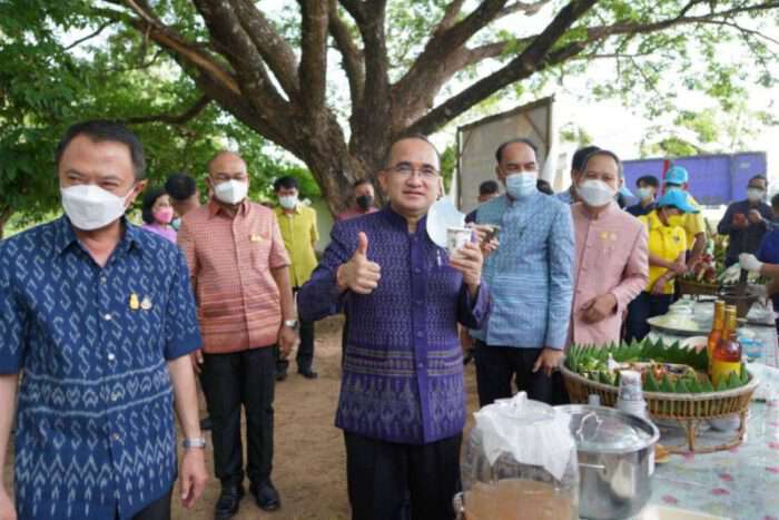 อธิบดีกรมการพัฒนาชุมชน กล่าวต่อว่า “จังหวัดอุบลราชธานี โดยสำนักงานพัฒนาชุมชนจังหวัดอุบลราชธานี ได้มีการขับเคลื่อนบทบาทในการเกื้อหนุนระหว่างวัดและชุมชนให้มีความสุขอย่างยั่งยืน สอดคล้องตามนโยบายของกระทรวงมหาดไทย โดยได้มีการดำเนินกิจกรรม “บวร” ในพื้นที่ชุมชนต้นแบบ เช่น บ้านวังอ้อ ตำบลหัวดอน อำเภอเขื่องใน ซึ่งประกอบไปด้วยกิจกรรมต่างๆ ได้แก่ กิจกรรม 1 ตำบล 1 ถนนสายวัฒนธรรม กิจกรรมพลัง (บวร) จิตอาสาพัฒนาวัดและชุมชน และกิจกรรม 1 ตำบล 1 วัด 1 คลังยาและอาหาร โดยใช้พลังบวรในการขับเคลื่อน ให้เห็นเป็นรูปธรรม พัฒนาคุณภาพชีวิตของประชาชนอย่างต่อเนื่อง ด้วยการมีส่วนร่วมของทุกฝ่าย รวมทั้งนโยบายรัฐบาลที่ช่วยในการขจัดความยากจนและพัฒนาคนทุกช่วงวัยอย่างยั่งยืนตามหลักปรัชญาของเศรษฐกิจพอเพียง โดยมหาดไทยได้ลงพื้นที่ขับเคลื่อนชี้แจงวัตถุประสงค์ตามภูมิภาค 4 ภูมิภาค เพื่อชี้แจงทำความเข้าใจกับผู้ปฏิบัติงานและขับเคลื่อนไปด้วยกัน ซึ่งจังหวัดอุบลราชธานี มีแนวทางการขับเคลื่อนที่ชัดเจน โดยใช้พลังบวร เป็นส่วนสำคัญในการขับเคลื่อนงาน และในวันที่ 29 เมษายน 2565 ได้มีการจัดกิจกรรมพัฒนาศักยภาพผ้าไทย โดยเชิญที่ปรึกษา ผู้เชี่ยวชาญด้านผ้ามาให้ความรู้กับกลุ่มช่างทอต่างๆ และจังหวัดใกล้เคียง เพื่อให้พี่น้องประชาชนได้มีอาชีพ สร้างรายได้ และสามารถเพิ่มพูนองค์ความรู้ทักษะต่างๆ แก่ช่างทอผ้า เพื่อนำไปพัฒนาคุณภาพของผ้าทอต่อไป รวมถึงในเรื่องของกองทุนชุมชน และกองทุนพัฒนาบทบาทสตรี จะสามารถช่วยแก้ไขปัญหาความยากจนในระดับพื้นที่ และกิจกรรม Kick off ในครั้งนี้ ได้จัดกิจกรรมปลูกผัก สวนครัว สมุนไพร ปลูกต้นราชพฤกษ์ (ต้นคูณ) การแปรรูปสมุนไพร การอบสมุนไพร ด้วยเตาอบสมุนไพร และกิจกรรมสาธิตการทำอาหารจากผลผลิตพืชผักและสมุนไพร