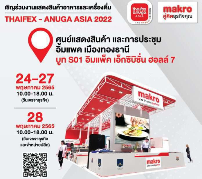 24 – 28 พฤษภาคมนี้ ไปร่วมชมศักยภาพของผู้นำธุรกิจค้าส่งค้าปลีก “แม็คโคร” ในงาน THAIFEX – ANUGA ASIA 2022 งานแสดงสินค้าอาหารและเครื่องดื่มที่ยิ่งใหญ่และครบวงจรที่สุดแห่งเอเชีย เพื่อตอกย้ำการเป็นผู้นำอาหารสด แหล่งรวมวัตถุดิบนานาชาติสำหรับผู้ประกอบการร้านอาหารที่สำคัญของไทย งานนี้ “ซันนี่ ซิดิค” ผู้บริหารสูงสุด สายงานบริหารสินค้า จัดเต็มการโชว์ศักยภาพความหลากหลายของทัพสินค้าดีเด็ดสำหรับมืออาชีพ ทั้ง อาหารแช่แข็ง เนื้อ อาหารทะเล เครื่องปรุง เมล็ดกาแฟ โดยเฉพาะ แบรนด์ aro ที่นำวัตถุดิบทางเลือกสำหรับอาหารไทย ญี่ปุ่น และตะวันตก มาครบจบที่เดียว พร้อมกันนั้นแม็คโคร โฮเรก้า อคาเดมี (MHA) ยังจัดเชฟมือดีมาสาธิตทำเมนูคาวหวานในกระแสนิยม ตลอดทั้ง 5 วันจัดงาน รวมทั้งมีโซลูชั่นแห่งโอกาสอย่าง แม็คโครคลิก และ maknet มานำเสนอด้วย พบกันที่บูท S01 ฮอลล์ 7 อิมแพค เมืองทองธานี เป็นงานระดับภูมิภาคเอเชียที่ยิ่งใหญ่และพลาดไม่ได้จริงๆ!