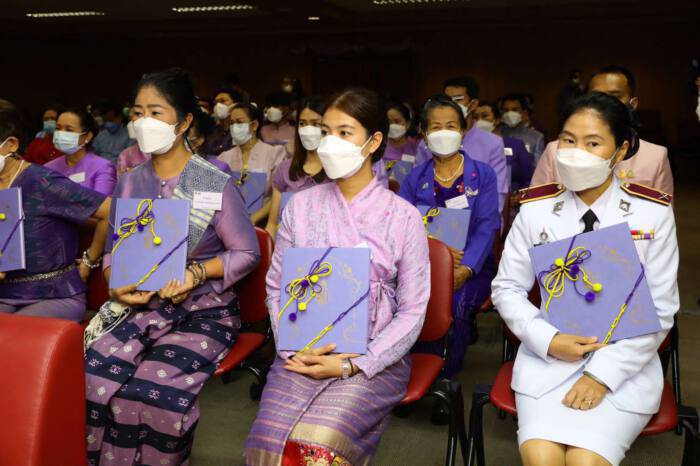วันที่ 21 มิถุนายน 2565 นายสุทธิพงษ์ จุลเจริญ ปลัดกระทรวงมหาดไทย เป็นประธานในพิธีมอบหนังสือพระราชทาน รวมน้ำใจ สืบสาน อนุรักษ์ศิลป์ผ้าถิ่นไทย ดำรงไว้ในแผ่นดิน โดยมี ดร.วันดี กุญชรยาคง จุลเจริญ นายกสมาคมแม่บ้านมหาดไทย นายชัยวัฒน์ ชื่นโกสุม รองปลัดกระทรวงมหาดไทย นายสมคิด จันทมฤก อธิบดีกรมการพัฒนาชุมชน ผศ.ดร.ศศิธร จันทมฤก ประธานชมรมแม่บ้านพัฒนาชุมชน นายสุรศักดิ์ อักษรกุล รองอธิบดีกรมการพัฒนาชุมชน นายวิฑูรย์ นวลนุกูล รองอธิบดีกรมการพัฒนาชุมชน นายวรงค์ แสงเมือง ผู้อำนวยการสำนักส่งเสริมภูมิปัญญาท้องถิ่นและวิสาหกิจชุมชน คณะผู้บริหารกรมการพัฒนาชุมชน และผู้ผลิต ผู้ประกอบการ OTOP ผ้าไทย ร่วมพิธีฯ ณ ห้องประชุมอัษฎางค์ กระทรวงมหาดไทย เขตพระนคร กรุงเทพมหานคร