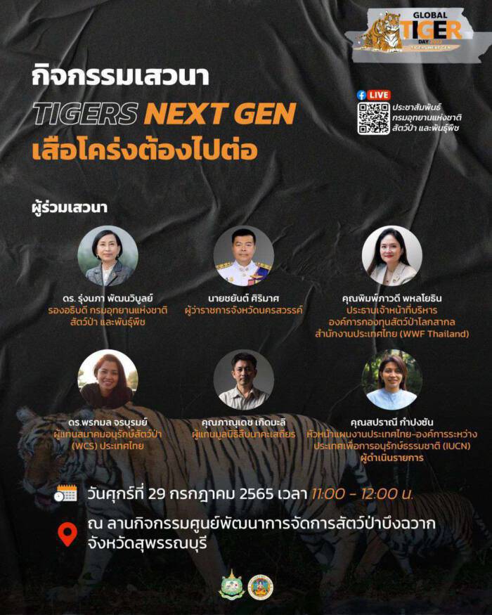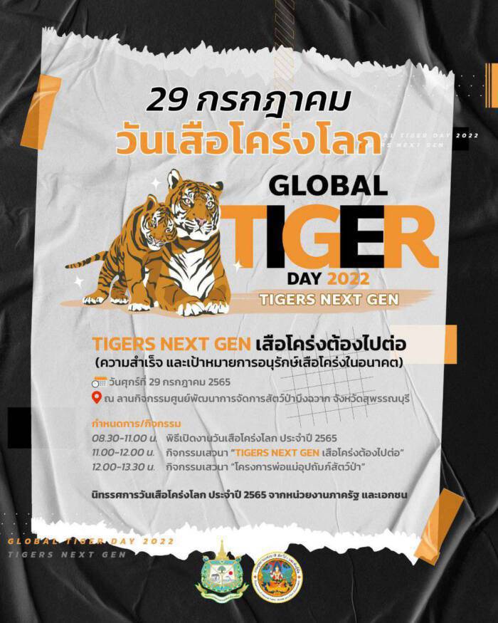 กรมอุทยานฯ เชิญชวนร่วมงานวันเสือโคร่งโลก 2565 “TIGERS NEXT GEN เสือโคร่งต้องไปต่อ” 29 กรกฎาคมนี้ ที่ บึงฉวาก จ.สุพรรณบุรี