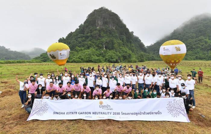 สิงห์ เอสเตท และพันธมิตรด้านความยั่งยืน สยามคูโบต้า ไทยคม พร้อมชุมชนในพื้นที่บริเวณสิงห์ปาร์ค จ.เชียงราย Kick off โครงการ “ปลูกป่าด้วยปลายนิ้ว” ลดผลกระทบจากการเปลี่ยนแปลงสภาพภูมิอากาศหรือภาวะโลกรวน ตามแผนการพัฒนาอย่างยืน SDG13 Climate Change ขององค์การสหประชาชาติ มุ่งสู่การเป็นองค์กร Carbon Neutrality ของสิงห์ เอสเตท ในปี 2030 โดยตั้งเป้าปลูกป่าให้ได้พื้นที่อย่างน้อย 1 ล้านตารางเมตร หรือกว่า 625 ไร่ ในพื้นที่ป่าต้นน้ำ กลางน้ำ และปลายน้ำ เพื่อรักษาความสมดุลด้านความหลากหลายทางชีวภาพ และสร้างจิตสำนึกกระตุ้นการเปลี่ยนแปลงพฤติกรรมของคนเมืองสู่สังคม low carbon พร้อมเป็นตัวแทนในการต่อยอดกิจกรรมปลูกป่าร่วมกับชุมชนท้องถิ่น ด้วยมาตราฐาน AGI (Asian Green Initiative)