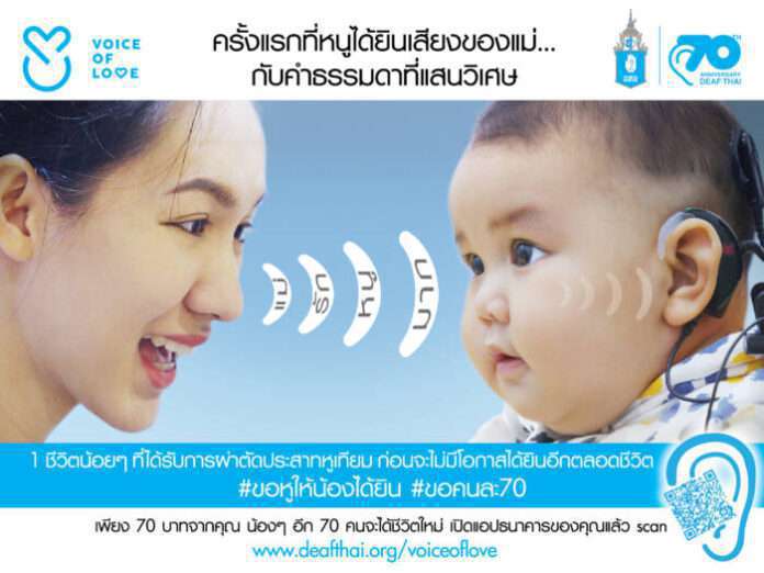 ในวาระครบรอบ 70 ปี แห่งการก่อตั้ง มูลนิธิอนุเคราะห์คนหูหนวก ในพระบรมราชินูปถัมภ์ ร่วมกับสมาคมนิสิตเก่านิเทศศาสตร์ จุฬาลงกรณ์มหาวิทยาลัย และเหล่ากัลยาณมิตรทุกภาคส่วน เดินหน้าโครงการ Voice of Love Project : Phase 2 กับแคมเปญระดมทุน ภายใต้ชื่อ Voice of Love “70 ปี 70 ชีวิตใหม่” ได้ยินเสียง “ความรัก” รวมพลังเครือข่ายจุดประกายให้สาธารณชนร่วมระดมทุนบริจาคกันคนละ 70 บาท หรือตามความประสงค์ ผ่าตัดใส่ประสาทหูเทียมเด็กหูหนวก 70 ชีวิต ครั้งประวัติศาสตร์ของประเทศ พลิกชีวิตน้องๆ หูหนวกให้กลายเป็นคนที่ได้ยินปกติ ให้ได้ชีวิตใหม่ ให้ได้ยินเสียงของความรัก พลิกชีวิตน้องๆ 70 คน ไปตลอดกาล