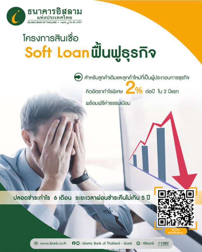 ธนาคารอิสลามแห่งประเทศไทย (ไอแบงก์) ออกโครงการสินเชื่ออัตรากำไรต่ำ Soft Loan สำหรับลูกค้าเดิมของธนาคารและลูกค้ารายใหม่ คิดอัตรากำไรเพียง 2% ต่อปี ในระยะเวลา 2 ปีแรก ผ่อนนานสูงสุด 5 ปี โดย 6 เดือนแรก ไอแบงก์กำหนดให้ลูกค้าชำระเฉพาะในส่วนของเงินต้นไม่ต้องชำระส่วนของกำไร ทั้งนี้ เพื่อเป็นการช่วยเหลือผู้ประกอบการในการฟื้นฟูธุรกิจ เสริมสภาพคล่อง และรองรับธุรกิจที่กำลังปรับตัวภายหลังสถานการณ์การระบาดของเชื้อไวรัสโคโรนา 2019 ท่ามกลางกระแสการเปลี่ยนแปลงของโลก