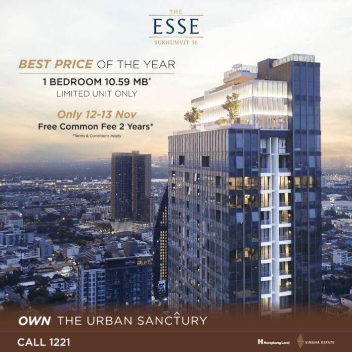 สิงห์ เอสเตท ส่งโปรโมชั่นพิเศษ The ESSE Sukhumvit 36 ต้อนรับลมหนาว มอบส่วนลดกว่า 3 ล้านบาท