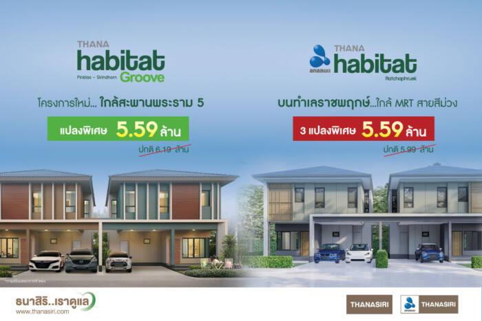 บริษัท ธนาสิริ กรุ๊ป จำกัด (มหาชน) ส่งบ้านหลังใหญ่พร้อมอยู่บนแปลงพิเศษกับความคุ้มค่าที่มากกว่าที่อยู่อาศัย สุนทรียภาพแห่งใหม่ของการใช้ชีวิต ครบเครื่องเรื่องทำเล และครบครันฟังก์ชั่นที่ลงตัว จาก 2 โครงการบ้านคุณภาพ ได้แก่ อนาบูกิ ธนาฮาบิแทต ราชพฤกษ์ จำนวน 3 หลัง และ ธนาฮาบิแทต กรู๊ฟ ปิ่นเกล้า-สิรินธร จำนวน 2 หลัง ในราคาพิเศษราคาเดียว 5.59 ล้านบาททั้ง 2 โครงการ (จากราคาปกติ 5.99 – 6.19 ล้านบาท) ตอบโจทย์ความคุ้มค่า ถึงสิ้นเดือนพฤศจิกายน 2565 นี้