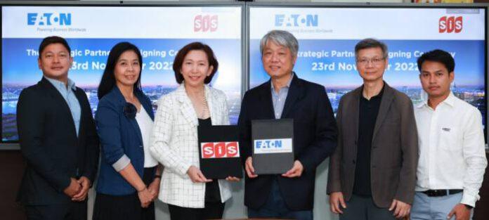 บริษัท อีตั้น อิเล็คทริค (ประเทศไทย) จำกัด (Eaton) นำโดยคุณสุภัทรา รามสูต ผู้จัดการประจำประเทศไทย(ที่สามจากซ้าย)พร้อมด้วยคุณศรีวัฒนา รักราษฎร์ Sales Manager (ที่สองจากซ้าย)และคุณรัฐกร รักยุติธรรม Sales Manager CPC (ซ้ายสุด) เซ็นสัญญาแต่งตั้งตัวแทนจำหน่ายเครื่องสำรองไฟฟ้าอีตั้นร่วมกับบริษัท เอสไอเอส ดิสทริบิวชั่น (ประเทศไทย) จำกัด (มหาชน)นำโดยคุณสมชัย สิทธิชัยศรีชาติ Managing Director(ที่สามจากขวา),คุณมณฑล มังกรกาญจน์ General Manager(ที่สองจากขวา) และคุณอดิสรณ์ อุรพงศ์ศุภวัชร Product Supervisor(ขวาสุด) นอกจากนี้ยังได้หารือร่วมกันในการหาโอกาสความร่วมมือสำหรับการจัดจำหน่ายผลิตภัณฑ์ไฟฟ้าด้านอื่นๆของบริษัท อีตั้น ในอนาคตอีกด้วย โดยมีการเซ็นสัญญาร่วมกัน ณ ห้องประชุมบริษัท เอสไอเอสฯ เมื่อเร็วๆนี้