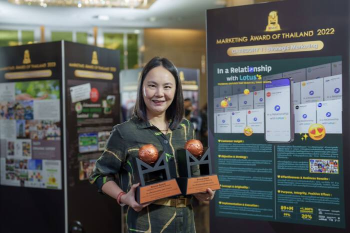 โลตัส โชว์ผลงานค้าปลีกไทยไอเดียสุดว้าว โดยคุณอุณา ตัน ผู้ช่วยผู้อำนวยการฝ่ายการตลาด โลตัส รับ 2 รางวัล Marketing Award of Thailand (MAT Award) ได้แก่ 1.Strategic Marketing แคมเปญการตลาดที่มีความเป็นเลิศด้านกลยุทธ์ 2.Innovations & Martech แคมเปญการตลาดที่มีความเป็นเลิศด้านการใช้นวัตกรรมและเทคโนโลยีเพื่อสร้างผลลัพธ์ใหม่ จากงานประกวดแคมเปญการตลาดที่ยิ่งใหญ่ที่สุดของประเทศไทย โดยสมาคมการตลาดแห่งประเทศไทย สะท้อนการจัดแคมเปญการตลาดที่เข้าใจ เข้าถึงผู้บริโภค และโดดเด่นด้านการออกแบบกลยุทธ์และนวัตกรรมใหม่ ๆ จากแคมเปญผนึกพันธมิตร 40 แบรนด์ดังในกลุ่มสินค้าอุปโภคบริโภค “รวมพลังลดใหญ่ พาไทยฝ่าวิกฤต” ลดราคาสินค้าในโลตัสมากกว่า 400 รายการ ลดสูงสุดมากกว่า 50% เป็นระยะเวลายาวนานถึง 2 เดือน ที่นอกจากจะเป็นการแสดงพลังเคียงข้างคนไทยในช่วงการแพร่ระบาดของโควิด-19 ให้สามารถก้าวผ่านความท้าทายทางเศรษฐกิจแล้ว ยังมีไอเดียแปลกใหม่ที่ชวน 40 แบรนด์ดังแบบไม่จำกัดค่าย มาพร้อมใจกันขึ้นสถานะ In a relationship with Lotus’s บนแฟนเพจเฟซบุ๊กของแบรนด์ เพื่อแสดงสัญลักษณ์ว่าโลตัสและ 40 แบรนด์ดัง อยู่ในความสัมพันธ์ที่จะไม่ทอดทิ้งคนไทย โดยตัดและตรึงราคาสินค้าจำเป็นครั้งใหญ่ช่วยประชาชนไทยฝ่าวิกฤต นับเป็นการใช้กลยุทธ์ Co-creation ครั้งใหญ่ที่สร้างปรากฏการณ์ไวรัล สร้างการรับรู้เป็นวงกว้าง และทำให้แบรนด์ได้รับการพูดถึงในเชิงบวกในโลกออนไลน์