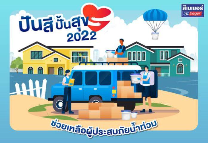 กลุ่มบริษัท เบเยอร์ จำกัด ผู้นำสีนวัตกรรม รักษ์โลก รักคุณ สานต่อแคมเปญ “ปันสี ปั้นสุข 2022” เพื่อช่วยเหลือผู้ประสบภัยหลังน้ำท่วม โดยสนับสนุนสีทาอาคารสำหรับซ่อมแซมบ้านเรือนและปรับปรุงภูมิทัศน์ภายในชุมชนให้กลับมางดงามดังเดิม พร้อมสร้างเสริมรอยยิ้มคืนสู่สังคมภายใต้โครงการ Beger Be Happy สีเบเยอร์สีแห่งความสุข ปีที่ 8