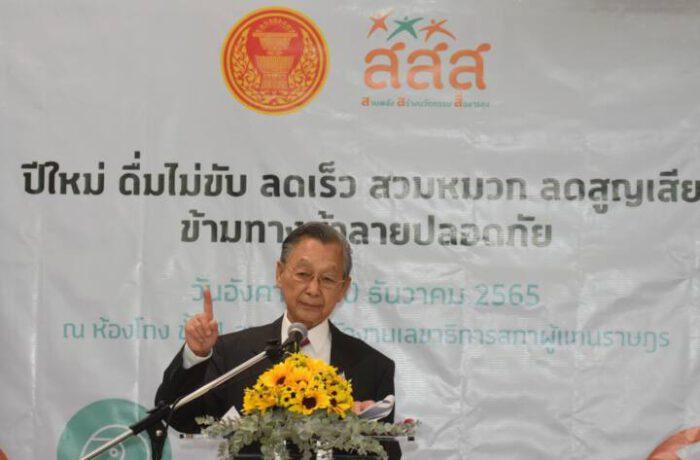 นายชวน หลีกภัย ประธานรัฐสภา และประธานสภาผู้แทนราษฎร กล่าวเปิดกิจกรรม และปาฐกถาพิเศษ หัวข้อ “หัวข้อบทบาทของฝ่ายนิติบัญญัติในการผลักดันนโยบายลดอุบัติเหตุ” ใจความว่า หน้าที่ของฝ่ายนิติบัญญัติได้มีการออกกฎหมายที่สำคัญ โดยล่าสุด พ.ร.บ.ที่ออกจากรัฐสภา คือ พ.ร.บ.จราจรทางบก (ฉบับที่ 13) พ.ศ.2565 มีผลบังคับใช้ วันที่ 6 กันยายน 2565 และเริ่มใช้ในช่วงต้นเดือนมกราคมนี้ สาระสำคัญที่ออกพ.ร.บ.ฉบับนี้ มาจากการเกิดอุบัติเหตุทางถนนของประเทศ ที่มีสาเหตุมาจากการที่ผู้ขับขี่ฝ่าฝืนหรือไม่ปฏิบัติตามหลักเกณฑ์ความปลอดภัยในการจราจรทางบก จึงต้องปรับปรุงกฎหมายเพื่อให้สอดคล้องกับสภาพจริงในการใช้รถใช้ถนนอย่างปลอดภัย และให้การป้องกันการกระทำความผิดให้มีประสิทธิภาพยิ่งขึ้น รวมทั้งปรับปรุงบทกำหนดโทษให้มีความเหมาะสมจะเป็นการลดอุบัติเหตุทางถนน และส่งเสริมให้ความเกิดความสะดวกความปลอดภัยในการจราจรทางบก