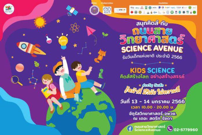 กระทรวงการอุดมศึกษา วิทยาศาสตร์ วิจัย และนวัตกรรม โดย องค์การพิพิธภัณฑ์วิทยาศาสตร์แห่งชาติ (อพวช.) จัดงาน “ถนนสายวิทยาศาสตร์ รับวันเด็กแห่งชาติ ประจำปี 2566” ภายใต้แนวคิด “KIDS SCIENCE คิดส์สร้างโลก อย่างสร้างสรรค์” ในรูปแบบของสถานีแห่งการเรียนรู้ทางวิทยาศาสตร์ ที่จะชวนน้อง ๆ เยาวชน ไปสนุกกับความมหัศจรรย์ของวิทยาศาสตร์ผ่านนิทรรศการและกิจกรรมที่หลากหลาย ทั้งรูปแบบ Onsite On Hands และ Online วันที่ 13-14 มกราคม 2566 ณ จัตุรัสวิทยาศาสตร์ อพวช. ณ เดอะ สตรีท รัชดา กรุงเทพฯ และวันที่ 14 มกราคม 2566 ณ อพวช. คลองห้า ปทุมธานี พร้อมกับมหาวิทยาลัยตามภูมิภาคต่าง ๆ และโรงเรียน 100 แห่งทั่วประเทศ