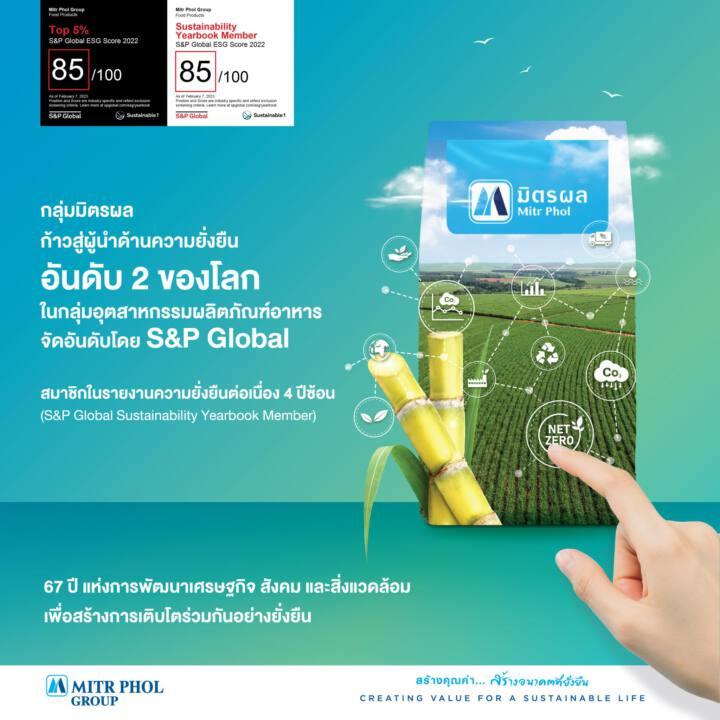 กลุ่มมิตรผล ผู้นำด้านการพัฒนาเพื่อความยั่งยืนในภาคเกษตรอุตสาหกรรมของประเทศไทย ก้าวสู่อันดับที่ 2 ของโลก ด้านการพัฒนาเพื่อความยั่งยืน (Sustainable Development) ในกลุ่มอุตสาหกรรมผลิตภัณฑ์อาหาร จากผลการประเมินด้านความยั่งยืนขององค์กร หรือ Corporate Sustainability Assessment (CSA) โดย S&P Global ต่อเนื่องเป็นปีที่ 5 โดยสามารถสร้างผลงานยอดเยี่ยมและไต่อันดับสูงขึ้นเรื่อยมา จากอันดับ 17 ในการเข้าร่วมประเมินปีแรกจนมาถึงอันดับ 2 ในปัจจุบัน จาก 353 องค์กรที่เข้าร่วมประเมิน ครองอันดับ TOP 5% S&P Global ESG Score 2022 และได้รับเลือกเป็นสมาชิกในรายงานความยั่งยืน “The Sustainability Yearbook Member” 4 ปีซ้อน นับเป็น อีกหนึ่งบทพิสูจน์ความสำเร็จของกลุ่มมิตรผลตลอดระยะเวลากว่า 67 ปี เพื่อสร้างองค์กรแห่งการพัฒนาเพื่อความยั่งยืนที่มีมาตรฐานและเป็นที่ยอมรับในระดับสากล ทั้งทางด้านเศรษฐกิจ สังคม และสิ่งแวดล้อม เพื่ออนาคตที่ยั่งยืนแก่ทุกภาคส่วน