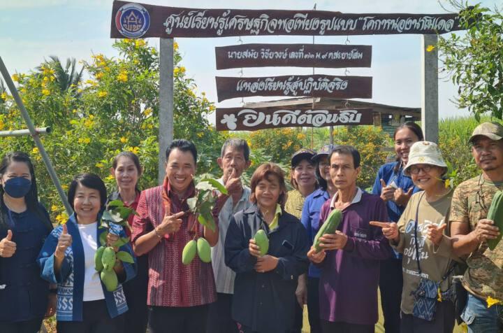 โอกาสนี้ นายวัชรเดช เกียรติชานน รองผู้ว่าราชการจังหวัดสุพรรณบุรี พร้อมด้วยพัฒนาการจังหวัด นายอำเภอ พัฒนาการอำเภอและ ผู้นำชุมชน เจ้าหน้าที่ ร่วมกันเยี่ยมชมศูนย์เรียนรู้เศรษฐกิจพอเพียง โคก หนอง นา โมเดล ขนาด 1 ไร่ ซึ่งในพื้นที่แปลงดังกล่าวได้มีการปลูกพืชผัก แปลงสมุนไพร แปรรูปชาตะไคร้ แปรรูปกล้วยฉาบและผลไม้หลากหลายชนิด อีกทั้งได้จัดสรรพื้นที่เป็นบ่อเลี้ยงปลา เป็นการจัดการพื้นที่อย่างเหมาะสม เน้นการผสมผสานเกษตรทฤษฎีใหม่ให้เข้ากับภูมิปัญญาพื้นถิ่นที่สอดคล้องกับธรรมชาติในบริบทพื้นที่นั้นๆ