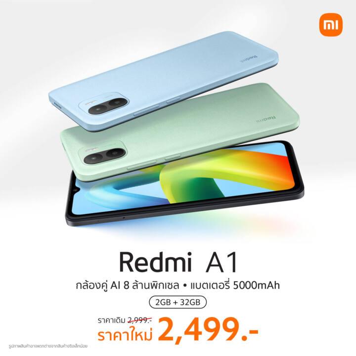 เสียวหมี่ ประเทศไทย จัดราคาพิเศษ Redmi A1 รุ่นความจุ 2GB+32GB สมาร์ทโฟนสุดคุ้มในราคาที่คุ้มกว่าเดิมเพียง 2,499 บาท ซึ่งมาพร้อมกับหน้าจอขนาดใหญ่ 6.52 นิ้ว กล้องคู่ 8MP และแบตเตอรี่ขนาดจุใจ 5000mAh บนดีไซน์สวยงาม มาสัมผัสสมาร์ทโฟนสุดคุ้ม Redmi A1 ได้ที่ Xiaomi Store และร้านตัวแทนจำหน่ายที่ร่วมรายการทั่วประเทศ