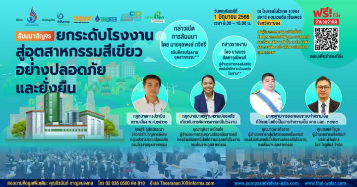 กรมโรงงานอุตสาหกรรม และ อินฟอร์มา มาร์เก็ตส์ เชิญชวนเข้าร่วมฟังงานสัมมนาฟรี ในหัวข้อ “ยกระดับโรงงานสู่อุตสาหกรรมสีเขียวอย่างปลอดภัยและยั่งยืน” ร่วมการบรรยายและเสวนาโดยตัวแทนจาก กองส่งเสริมเทคโนโลยีความปลอดภัยโรงงาน กรมโรงงานอุตสาหกรรม สัมมนานี้จะจัดขึ้นวันพฤหัสบดีที่ 1 มิถุนายน 2566 เวลา 8.30 – 11.00 น. ณ โรงแรมโนโวเทล ระยอง สตาร์ คอนเวนชั่น เซ็นเตอร์ จังหวัดระยอง ผู้สนใจเข้าร่วมฟังสัมมนาสามารถติดต่อ ขอข้อมูลเพิ่มเติมได้ที่ คุณธีรนันท์ กาญจนจงกล โทร (0) 2 036 0500 ต่อ 819 อีเมล Theeranan.k@informa.com ลงทะเบียนเข้าร่วมงานฟังสัมมนาฟรีได้ที่ www.pumpsandvalves-asia.com