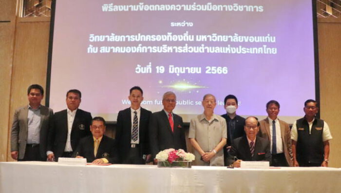 รศ.ดร.พีรสิทธิ์  คำนวณศิลป์  คณบดีวิทยาลัยการปกครองท้องถิ่น มหาวิทยาลัยขอนแก่น (มข.) เปิดเผยว่า  วิทยาลัยการปกครองท้องถิ่น มข. ลงนามบันทึกข้อตกลงความร่วมมือทางวิชาการกับ สมาคมองค์การบริหารส่วนตำบลแห่งประเทศไทย โดยจะร่วมมือกันในการดำเนินการออกแบบและจัดหลักสูตรพัฒนาบุคลากรทั้งในรูปแบบที่เป็นหลักสูตรฝึกอบรมเชิงปฏิบัติการระยะสั้น (Workshop Training Program) ที่มุ่งการเพิ่มพูนทักษะ (Up-Skills) การทบทวนทักษะ (Re-Skills) และการเสริมทักษะใหม่ (New-Skills) โดยวัตถุประสงค์ของความร่วมมือครั้งนี้เพื่อพัฒนาบุคลากรขององค์กรปกครองส่วนท้องถิ่นให้มีความรู้ ความสามารถ และทักษะให้สอดคล้องกับการเปลี่ยนแปลงไปของเทคโนโลยีและบริบทของสังคม และยังเป็นการเตรียมความพร้อมรองรับในการกระจายอำนาจสู่ท้องถิ่น