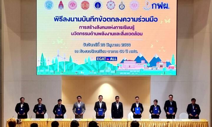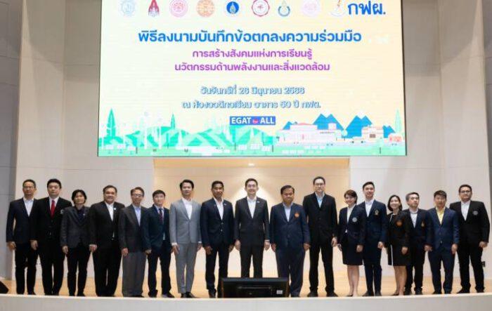 บันทึกความเข้าใจ การสร้างสังคมแห่งการเรียนรู้นวัตกรรมด้านพลังงานและสิ่งแวดล้อม ระหว่าง มหาวิทยาลัยขอนแก่น กับ การไฟฟ้าฝ่ายผลิตแห่งประเทศไทย ในครั้งนี้ เพื่อส่งเสริมความร่วมมือและการมีส่วนร่วมระหว่าง กฟผ. และ มข. ในโครงการความร่วมมือสร้างสังคมแห่งการเรียนรู้นวัตกรรมด้านพลังงานและสิ่งแวดล้อม นวัตกรรมด้านการจัดการของเสีย นวัตกรรมด้านการเกษตร และด้านอื่น ๆ ที่เกี่ยวข้อง โดยให้มีการจัดกิจกรรมอย่างน้อยปีละครั้ง เป็นความร่วมมือพัฒนาศักยภาพเยาวชนด้านความคิดสร้างสรรค์ เรื่องการอนุรักษ์พลังงานและสิ่งแวดล้อม ให้สามารถสร้างสรรค์นวัตกรรมได้ เพิ่มโอกาสในการเข้าศึกษาต่อในระดับอุดมศึกษาให้กับนักเรียนในระดับชั้นมัธยมศึกษาในโครงการห้องเรียนสีเขียว สร้างภาคีเครือข่ายด้านการอนุรักษ์พลังงานและสิ่งแวดล้อม พัฒนากลยุทธ์และแนวทางความร่วมมือในกระบวนการของกิจกรรมในอนาคต และดำเนินกิจกรรมอื่นๆ ร่วมกัน