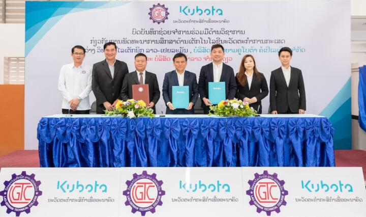 บริษัทสยามคูโบต้าคอร์ปอเรชั่น จำกัด โดย นายไวพจน์ หามาลา ผู้จัดการฝ่ายบริการลูกค้า และ บริษัท คูโบต้าลาว จำกัด โดย นายธนวัต ศิริพรพันธ์ ผู้จัดการคูโบต้าลาว ร่วมกับ นายสุริยา ป่าไช รองผู้อำนวยการวิทยาลัยเทคนิค ลาว-เยอรมัน ลงนามบันทึกข้อตกลงความร่วมมือทางวิชาการว่าด้วย “การดำเนินการพัฒนาการศึกษาด้านเทคโนโลยีนวัตกรรมการเกษตร” โดยมี ดร.หนูพัน อุตสา อธิบดีกรมอาชีวศึกษา สาธารณรัฐประชาธิปไตยประชาชนลาว ให้เกียรติเป็นประธาน เพื่อสานต่อหลักสูตรช่างเครื่องจักรกสิกรรม ภายใต้โครงการ KUBOTA Technical Education Center ต้นแบบแห่งการบ่มเพาะองค์ความรู้ด้านเทคโนโลยี และนวัตกรรมการเกษตร ที่ได้รับการรับรองจากกรมอาชีวศึกษา สปป. ลาว ในโอกาสนี้ยังได้จัดแข่งขันช่างเหรียญทอง เพื่อยกระดับและพัฒนาศักยภาพของช่างบริการ ณ วิทยาลัยเทคนิค ลาว-เยอรมัน นครหลวงเวียงจันทน์ สปป. ลาว เมื่อวันก่อน