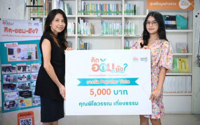“สสส. เชื่อมั่นในพลังคนรุ่นใหม่ การประกวดครั้งนี้ เปิดกว้างให้ประชาชนทั่วไปเข้าร่วม มีการจัดอบรมโดยผู้เชี่ยวชาญ ทั้งด้านการเงิน การลงทุน นักสร้างคอนเทนต์มืออาชีพ ผู้เชี่ยวชาญด้านสื่อ การคัดเลือกผลงานมีผู้ทรงคุณวุฒิที่หลากหลาย ทั้งภาควิชาการและภาคเอกชนร่วมเป็นคณะกรรมการตัดสิน มีผลงานที่ได้รับการคัดเลือก 16 คลิป จาก 100 ทีม รางวัลชนะเลิศ ได้แก่ เรื่อง “ปัญหาการเงิน ไม่ได้แก้ด้วยการยืมเงิน” จาก น.ส.วิลาสินี ไทยภักดี รองชนะเลิศอันดับ 1 เรื่อง “ก้าวไปให้ไกล ควรก้าวเร็วหรือก้าวแรง ?” จาก น.ส.ภาวิดา ผุสดีโสภณ รองชนะเลิศอันดับ 2 เรื่อง “คุณจะเลือกอะไร” จากทีม SPA พร้อมกับเปิดให้ประชาชนโหวตคลิปที่ชื่นชอบ ซึ่งรางวัล Popular Vote เรื่อง “เบื่อกับชีวิต คิด…” จาก น.ส.พิไลวรรณ เที่ยงธรรม ทั้งนี้ จะนำผลงานเผยแพร่ผ่านช่องทางยูทูบ “ศูนย์เรียนรู้สุขภาวะ สสส.” ให้เป็นแรงบันดาลใจแก่คนรุ่นใหม่สร้างสรรค์สื่อที่มีคุณภาพ ใช้นวัตกรรมขับเคลื่อนการสร้างเสริมสุขภาพให้กับสังคมต่อไป” นางเบญจมาภรณ์ กล่าว
