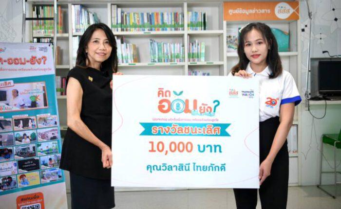 น.ส.วิลาสินี ไทยภักดี ผู้รับรางวัลชนะเลิศการประกวดผลิตนวัตกรรมสื่อสารผ่านคลิปวิดีโอ ภายใต้โครงการ “คิด-ออม-ยัง?” สสส. กล่าวว่า ปัจจุบันเป็นพนักงานฝ่ายบุคคลของบริษัทเอกชน ตั้งใจเข้าร่วมโครงการของ สสส. เนื่องจากภายในบริษัทสนใจทำโครงการเรื่องการออมเงิน ได้เข้าร่วมอบรมจากผู้เชี่ยวชาญ ทำให้มีความรู้เรื่องการเงิน การออม นำไปสู่การจัดกิจกรรมกับพนักงานในบริษัท รวมถึงผลิตนวัตกรรมสื่อสารผ่านคลิปวิดีโอเรื่อง “ปัญหาการเงิน ไม่ได้แก้ด้วยการยืมเงิน” ส่งเข้าร่วมประกวดในครั้งนี้ เพราะอยากใช้สื่อเผยแพร่ในวงกว้าง ลดปัญหาการยืมเงิน กระตุ้นตัวเองไปหารายได้เสริม ช่วยลดปัญหาของพนักงานภายในบริษัทในระยะยาว