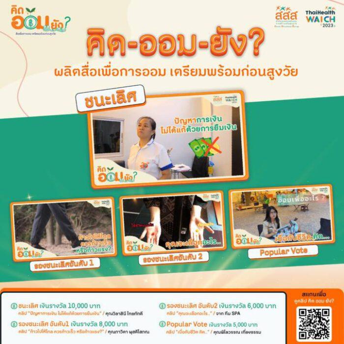 สสส. สานพลังภาคีสร้างปัญญา ดึงนักลงทุน-นักสร้างคอนเทนต์มืออาชีพ สานฝันคนรุ่นใหม่สร้างนวัตกรรมสื่อสารสุข ผลิตสื่อส่งต่อความรู้ “คิด-ออม-ยัง ?” เตรียมพร้อมเข้าสู่สังคมสูงวัยระดับสุดยอด ปี 74