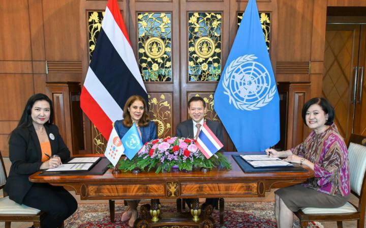 วันที่ 21 สิงหาคม 2566 – นางสาวสิริลักษณ์ เชียงว่อง หัวหน้าสำนักงานกองทุนประชากรแห่งสหประชาชาติประจำประเทศไทย และนางอุรีรัชต์ เจริญโต อธิบดีกรมความร่วมมือระหว่างประเทศ กระทรวงการต่างประเทศ ได้ลงนามความร่วมมือหุ้นส่วนเชิงยุทธ์ศาสตร์ ระหว่าง กองทุนประชากรแห่งสหประชาชาติ (United Nations Population Fund หรือ UNFPA) และ กรมความร่วมมือระหว่างประเทศ กระทรวงการต่างประเทศ (Thailand International Cooperation Agency หรือ TICA) โดยมี นายศรัณย์ เจริญสุวรรณ ปลัดกระทรวงการต่างประเทศ และนางกีต้า ซับบระวาล ผู้ประสานงานสหประชาชาติประจำประเทศไทย ร่วมเป็นสักขีพยาน พร้อมผู้แทนหน่วยงานภาครัฐและเอกชน และสื่อมวลชน ร่วมงาน ณ ห้องบัวแก้ว กระทรวงการต่างประเทศ กรุงเทพฯ