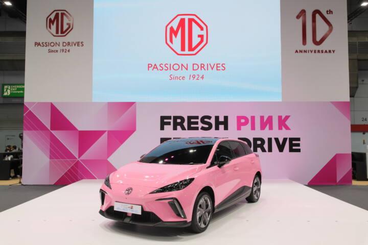 อีกหนึ่งไฮไลท์จากการออกแบบรถไฟฟ้าโดย AI ในช่วงที่ “สีชมพู ฟีเวอร์” นำมาสร้างเป็นคอนเทนต์ NEW MG4 ELECTRIC สีชมพูบนโลกโซเชียล ซึ่งได้รับความสนใจจากแฟนเพจเป็นอย่างมาก จากเรื่องราวในออนไลน์ กลายเป็นไอเดียนำไปสู่รถคันจริงด้วยคอนเซ็ปต์ “FROM AI TO REALITY” โดยการนำเอา NEW MG4 ELECTRIC มาแรพด้วยสติ๊กเกอร์สี FRESH PINK ทั้งคัน พร้อมเปิดรับจองให้เป็นเจ้าของเพียง 8 คัน ในงาน BIG MOTOR SALE 2023 เท่านั้น เพื่อเป็นของขวัญให้กับแฟนๆ เอ็มจี”