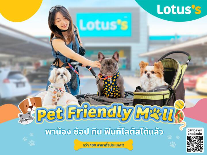 นางสาวเบญจวรรณ อ่องศรี ผู้อำนวยการอาวุโส สายงานบริหารพื้นที่ศูนย์การค้า โลตัส กล่าวว่า “โลตัส เดินหน้าในการเป็น SMART Community Center ศูนย์รวมการใช้ชีวิตแบบสมาร์ทของทุกคนในชุมชน โดยพัฒนาสาขารูปแบบใหม่ ปรับรูปโฉม ขยายพื้นที่ศูนย์การค้าในสาขาเดิม เพื่อให้แต่ละสาขามีพื้นที่การให้บริการที่ตอบโจทย์ไลฟ์สไตล์และความต้องการของคนในแต่ละพื้นที่มากขึ้น พร้อมจัดกิจกรรมพิเศษเพื่อตอบโจทย์การใช้ชีวิตของลูกค้า ในยุคปัจจุบันจะเห็นว่าคนเลี้ยงสัตว์กันมากขึ้น เกิดทาสน้องหมาน้องแมวมากมาย จนเป็นปรากฏการณ์ Pet Humanization จากพฤติกรรมที่เจ้าของสัตว์เลี้ยง ดูแลสัตว์เลี้ยงเสมือนว่าเป็นคนในครอบครัว เลี้ยงดูและให้ความรักไม่ต่างจากการเลี้ยงลูกเลี้ยงหลาน ซึ่งเป็นกระแสที่เป็นเมกะเทรนด์และมีแนวโน้มเติบโตทั่วโลกรวมทั้งในประเทศไทยด้วย โลตัสจึงพร้อมรองรับเทรนด์ดังกล่าวเพื่อตอบโจทย์ผู้บริโภคที่มีสัตว์เลี้ยง โดยเปิด Pet Friendly Mall นำร่องในโลตัส ไฮเปอร์มาร์เก็ต กว่า 100 สาขาทั่วประเทศ นับเป็นค้าปลีกแรกที่ปรับตัวรองรับครอบครัวสัตว์เลี้ยงในจำนวนสาขาที่เยอะที่สุดและครอบคลุมทั่วไทย อาทิ โลตัส นอร์ธ ราชพฤกษ์, โลตัส พัฒนาการ, โลตัส รามอินทรา, โลตัส เลียบคลองสอง, โลตัส ลาดกระบัง, โลตัส บางนา-ตราด, โลตัส เชียงใหม่ (คำเที่ยงและหางดง), โลตัส ชลบุรี, โลตัส จันทบุรี, โลตัส โคราช, โลตัส อุบลราชธานี, โลตัส สุราษฎร์ธานี, โลตัส ภูเก็ต และอีกมากมาย ที่เปิดพื้นที่ต้อนรับครอบครัวก๊วน 4 ขา ให้เจ้าของสามารถพาน้อง ๆ มาร่วมช้อปปิ้งที่โลตัสได้ในโซนศูนย์การค้า รวมทั้งร้านค้าร้านอาหารบางร้านที่มีความเหมาะสมและมีโซนที่สัตว์เลี้ยงสามารถเข้าได้ โดยมีเงื่อนไขการพาสัตว์เลี้ยงเข้าศูนย์การค้า เพื่อยังคงมาตรฐานด้านคุณภาพและการควบคุมเรื่องสุขอนามัย เพื่อมอบความสุขทั้งครอบครัวที่มีสัตว์เลี้ยงและลูกค้าทั่วไป สร้างความรู้สึกดีดี ทุกวัน ที่โลตัส”