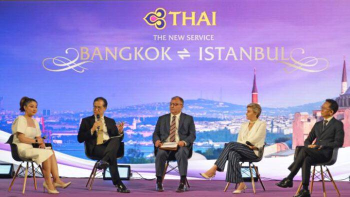บริษัท การบินไทย จำกัด (มหาชน) จัดงานแนะนำเส้นทางบินใหม่ สู่นครอิสตันบูล สาธารณรัฐทูร์เคีย เสริมความแข็งแกร่งของเครือข่ายเส้นทางบินของบริษัทฯ โดยมี นายปิยสวัสดิ์ อัมระนันทน์ ประธานคณะผู้บริหารแผนฟื้นฟูกิจการ บริษัทฯ เป็นประธานในงาน พร้อมด้วยนางแซรัป แอร์ซอย เอกอัครราชทูตสาธารณรัฐทูร์เคียประจำประเทศไทย นายอสิ ม้ามณี อธิบดีกรมยุโรป นายศิริปกรณ์ เชี่ยวสมุทร รองผู้ว่าการด้านตลาดยุโรป แอฟริกา ตะวันออกกลาง และอเมริกา การท่องเที่ยวแห่งประเทศไทย (ททท.) นายพรชัย ฐีระเวช ผู้บริหารแผนฟื้นฟูกิจการ นายชาย เอี่ยมศิริ ประธานเจ้าหน้าที่บริหารและผู้บริหาร ร่วมในงาน