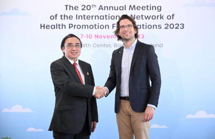 นพ.อเลสซานโดร ดีเมโย ประธานเครือข่ายกองทุนสนับสนุนการสร้างเสริมสุขภาพนานาชาติ The International Network of Health Promotion Foundations – INHPF และผู้จัดการกองทุน สสส. แห่งรัฐวิคตอเรีย ออสเตรเลีย กล่าวว่า ตลอดระยะ 23 ปีที่ผ่านมาเครือข่าย INHPF ได้รับการพัฒนาเป็นกลไกที่แข็งแกร่ง สำหรับการทำงานร่วมกัน และแบ่งปันการเรียนรู้ระหว่างสมาชิกที่หลากหลาย ที่ผ่านมาสมาชิกเครือข่ายได้ร่วมกัน ทำหน้าที่บทบาทเสริมสร้างขีดความสามารถของประเทศต่างๆ ในการจัดตั้งกองทุนเพื่อเป็นกลไกนวัตกรรม เป็นโมเดลที่สำคัญรับคณะศึกษาดูงาน แบ่งปันบทเรียนองค์ความรู้ด้านการสร้างเสริมสุขภาพแก่นานาประเทศทั่วโลก จัดการเวทีวิชาการและเวทีคู่ขนานการประชุมระดับโลก ที่เกี่ยวข้องกับการสร้างเสริมสุขภาพ เพื่อเผยแพร่ต้นแบบแนวปฏิบัติที่ดีของกองทุนสร้างเสริมสุขภาพในเครือข่ายฯ ส่งเสริม และพัฒนาความร่วมมือกับองค์กรพันธมิตรที่สำคัญ อาทิ องค์การอนามัยโลก และ มูลนิธิเพื่อสังคมอาเซียนปลอดบุหรี่ (SEATCA) ในการผลักดันการดำเนินการร่วมที่สำคัญ โดยเฉพาะการเสริมสร้างขีดความสามารถของประเทศต่างๆ ในการจัดตั้งกองทุนที่ยั่งยืนในการสร้างเสริมสุขภาพ