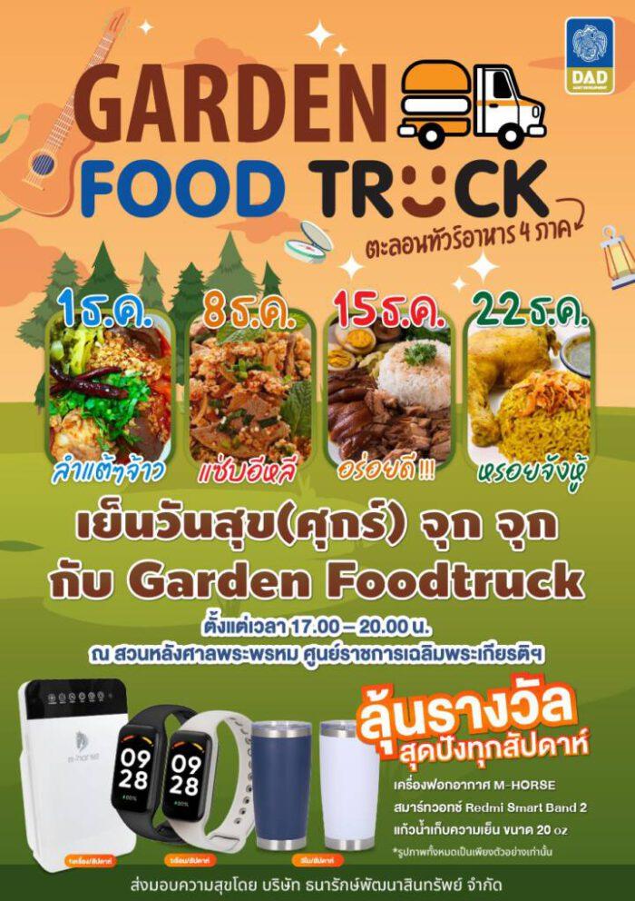 บริษัท ธนารักษ์พัฒนาสินทรัพย์ จำกัด หรือ DAD Asset Development ชวนเที่ยวงาน “Garden Food Truck” ตะลอนทัวร์อาหาร 4 ภาค เพลิดเพลินไปกับการแสดงดนตรีในบรรยากาศสบาย ๆ ส่งท้ายปี 2566 ทุกวันศุกร์ตลอดเดือนธันวาคมนี้ ตั้งแต่เวลา 17.00–20.00 น. ณ สวนหลังศาลพระพรหม ศูนย์ราชการเฉลิมพระเกียรติฯ แจ้งวัฒนะ