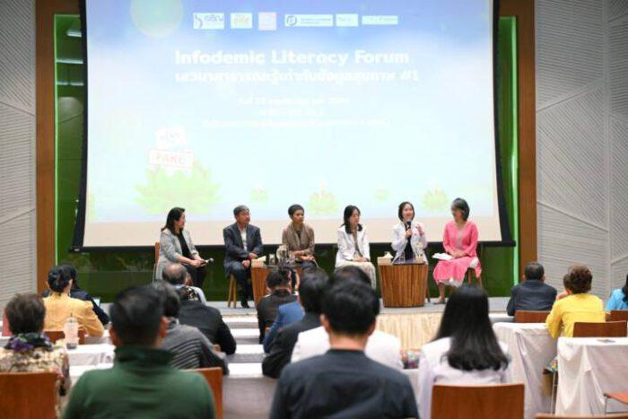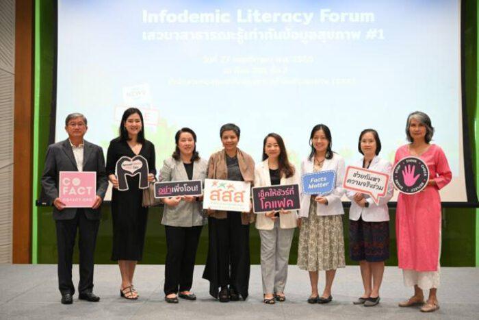 ที่อาคารศูนย์เรียนรู้สุขภาวะ กรุงเทพฯ นางญาณี รัชต์บริรักษ์ ผู้อำนวยการสำนักสร้างเสริมระบบสื่อและสุขภาวะทางปัญญา สำนักงานกองทุนสนับสนุนการสร้างเสริมสุขภาพ (สสส.) กล่าวว่า รายงานผลสำรวจพฤติกรรมผู้ใช้อินเทอร์เน็ตไทย ปี 2565 โดยสำนักงานพัฒนาธุรกรรมทางอิเล็กทรอนิกส์ กระทรวงดิจิทัลเพื่อเศรษฐกิจและสังคม พบคนไทย 85% กำลังใช้ชีวิตใน “โลกคู่ขนานออนไลน์” ใช้อินเทอร์เน็ตเฉลี่ย 8.06 ชั่วโมงต่อวัน ที่สำคัญยังพบว่า คนไทย 62.5% กังวลเรื่องข่าวลวง ซึ่งสูงติดอันดับ 1 ใน 10 ของโลก สสส. สานพลัง โคแฟค (ประเทศไทย) และภาคีเครือข่าย จัดเวที Infodemic Literacy Forum เสวนาสาธารณะรู้เท่าทันข้อมูลสุขภาวะ #1 มุ่งเป้าพัฒนาระบบนิเวศสื่อสุขภาวะ พัฒนาทักษะเท่าทันสื่อ จิตสำนึก ค่านิยม และพฤติกรรมการใช้สื่อ สนับสนุนให้เกิดกลไกเฝ้าระวัง เป็นวิถีปฏิบัติในการใช้สื่ออย่างสร้างสรรค์ โดยเฉพาะในกลุ่มเด็ก เยาวชน ผู้สูงอายุ