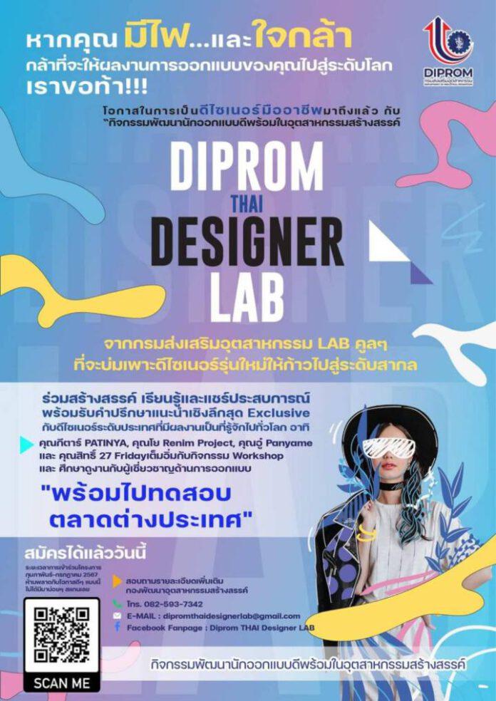 จึงสร้างสรรค์กิจกรรมพัฒนานักออกแบบดีพร้อมในอุตสาหกรรมสร้างสรรค์ (DIPROM Thai Designer Lab 2024) เพื่อสนับสนุนนักออกแบบไทยให้มีศักยภาพเทียบเท่าในระดับสากล ซึ่งเป็นการตอบรับและส่งเสริม soft power ไทยในด้านแฟชั่น พร้อมสนับสนุนนักออกแบบและผู้ประกอบการให้มีการปรับตัวให้ก้าวทันเศรษฐกิจยุคใหม่ เพื่อให้สอดคล้องกับนโยบาย “RESHAPE THE FUTURE : โลกเปลี่ยน อุตสาหกรรมปรับ พร้อมรับอนาคต”