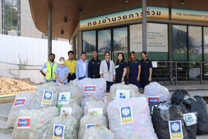 นางสาวกุสุมา ทรงผาสุก ผู้ช่วยกรรมการผู้จัดการ บริษัท ธนารักษ์พัฒนาสินทรัพย์ จำกัด ( ธพส. ) พร้อมด้วยกลุ่มที่ปรึกษาฯ โครงการพัฒนาพื้นที่ส่วนขยายศูนย์ราชการเฉลิมพระเกียรติ ๘๐ พรรษา ๕ ธันวาคม ๒๕๕๐ โซนซี ร่วมรักษาสิ่งแวดล้อม บริจาคขวดพลาสติกที่ใช้แล้ว (ขวด PET) จำนวน 375.66 กิโลกรัม มอบให้แก่วัดจากแดง จังหวัดสมุทรปราการ เพื่อนำไปรีไซเคิลเป็นผ้าผืน ใช้ตัดเย็บเป็นจีวร เครื่องนุ่งห่ม และผลิตภัณฑ์ต่างๆ ถวายพระสงฆ์ รวมถึงจำหน่ายให้แก่ประชาชนที่สนใจ โดยขวดพลาสติกดังกล่าว DAD ได้มาจากการรับบริจาคภายในศูนย์ราชการเฉลิมพระเกียรติฯ ซึ่งตั้งแต่เดือนตุลาคม 2566 ถึงปัจจุบัน รวมขวดพลาสติกที่นำไปบริจาคให้วัดจากแดงแล้วทั้งสิ้น 1,424.16 กิโลกรัม