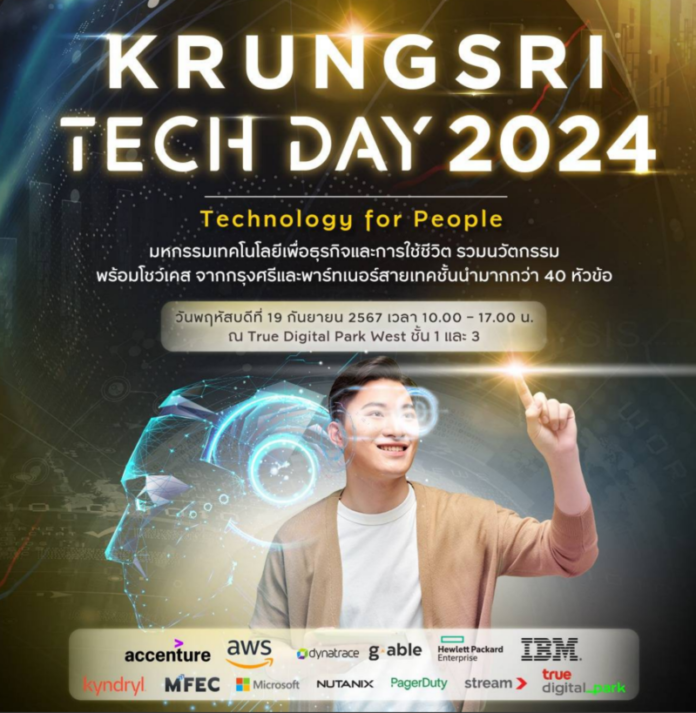 กรุงศรี ตอกย้ำความเป็นหนึ่งในผู้นำด้านเทคโนโลยี ผนึกพันธมิตรสายเทค จัดงาน Krungsri Tech Day 2024 ต่อเนื่องเป็นปีที่ 3 ยิ่งใหญ่ ภายใต้แนวคิด Technology for People มหกรรมเทคโนโลยีเพื่อธุรกิจเเละการใช้ชีวิต