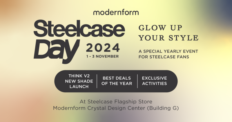 บริษัท โมเดอร์นฟอร์มกรุ๊ป จำกัด (มหาชน) หรือ ผู้นำธุรกิจเฟอร์นิเจอร์ในประเทศไทยมากกว่า 4 ทศวรรษ ที่เข้าใจไลฟ์สไตล์คนยุคใหม่ และเป็นตัวแทนจำหน่ายอย่างเป็นทางการของ Steelcase (สตีลเคส) แบรนด์เฟอร์นิเจอร์สำนักงานระดับโลกจากประเทศสหรัฐอเมริกาที่มียอดขายเป็นอันดับ 1 ของโลกมากกว่า 30 ปี ชวนสัมผัสนวัตกรรมเฟอร์นิเจอร์ออฟฟิศที่ช่วยเพิ่มประสิทธิภาพการทำงาน ในงาน Steelcase Day พบกับไอเทมเด็ดทุกรุ่นของสตีลเคส พร้อมเปิดตัว THINK V2 เฉดสีใหม่สุดพิเศษ ภายใต้คอนเซ็ปต์ “Grow Up Your Style เปล่งประกายในสไตล์ที่เป็นคุณ” เก้าอี้เพื่อสุขภาพที่คิดและปรับให้อัตโนมัติ เป็นรุ่นที่ได้รับความนิยมตลอดกาล ตอบโจทย์เรื่อง Personalized ให้ผู้ใช้งานออกแบบโทนสีได้ตามสไตล์ที่เป็นตัวเอง และในงานยังพบกับสิทธิพิเศษต่างๆมากมาย สำหรับแฟนๆสตีลเคส งานนี้พลาดไม่ได้! พบกันที่ Steelcase Flagship Store ชั้น 2 โชว์รูมโมเดอร์นฟอร์ม สาขาคริสตัล ดีไซน์เซ็นเตอร์ ในวันที่ 1 – 3 พฤศจิกายน 2567