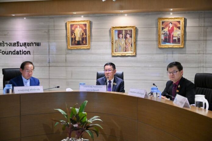 ด้านนายสมศักดิ์ เทพสุทิน รัฐมนตรีว่าการกระทรวงสาธารณสุข ในฐานะรองประธานกองทุน สสส. คนที่ 1 กล่าวสนับสนุนการให้ สสส.บูรณาการการทำงานร่วมกับ สช. และหน่วยงานที่เกี่ยวข้อง ในการป้องกันและแก้ปัญหาอัตราการเพิ่มจำนวนการสูบบุหรี่และบุหรี่ไฟฟ้าในเด็กและเยาวชนอย่างเร่งด่วน เนื่องจากส่วนประกอบของบุหรี่ไฟฟ้าล้วนเป็นสารที่ก่อให้เกิดอันตรายโดยตรงอย่างรุนแรงต่ออวัยวะในร่างกาย เช่น สารฟอร์มัลดีไฮด์ หรือ น้ำยาดองศพ สารหนู โลหะหนัก ซึ่งเป็นสารก่อมะเร็ง ดังนั้น การรณรงค์ป้องกันและแก้ปัญหา ขอให้ สสส. มุ่งเน้นไปที่การสร้างการตระหนักรู้ในเด็กและเยาวชน รวมถึงการรณรงค์ให้เกิดสื่อสารให้เข้าใจถึงอันตรายจากบุหรี่ไฟฟ้า