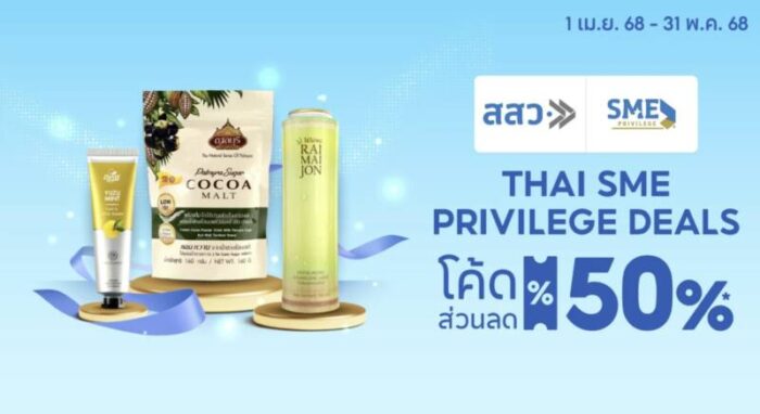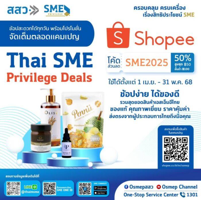 สสว. ร่วมกับ ช้อปปี้ จัดแคมเปญออนไลน์ “Thai SME Privilege Deals” บนช้อปปี้ ชวนเลือกซื้อสินค้าคัดสรร รับส่วนลดพิเศษ 1 เม.ย. – 31 พ.ค. 68 นี้ พร้อมเชิญชวนผู้ประกอบการ SME พัฒนาศักยภาพผ่านเครื่องมือใหม่บนแพลตฟอร์มออนไลน์
