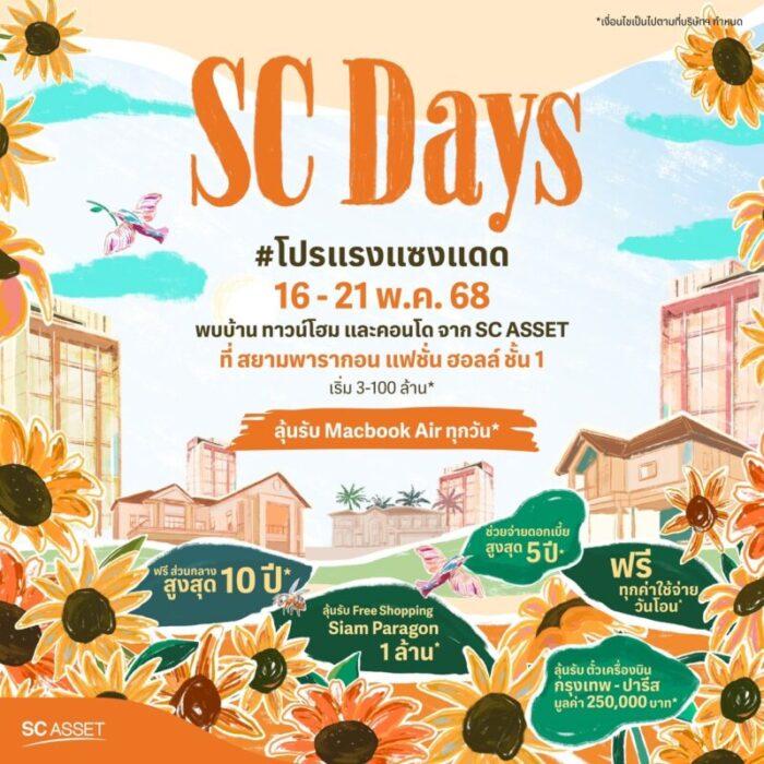 - “SC DAYs #โปรแรงแซงแดด” รวมบ้าน-คอนโดคุณภาพกว่า 81 โครงการ พร้อมลุ้นของรางวัลเฉพาะในงานแบบจัดเต็ม ณ สยามพารากอน 16-21 พ.ค. 68 นี้